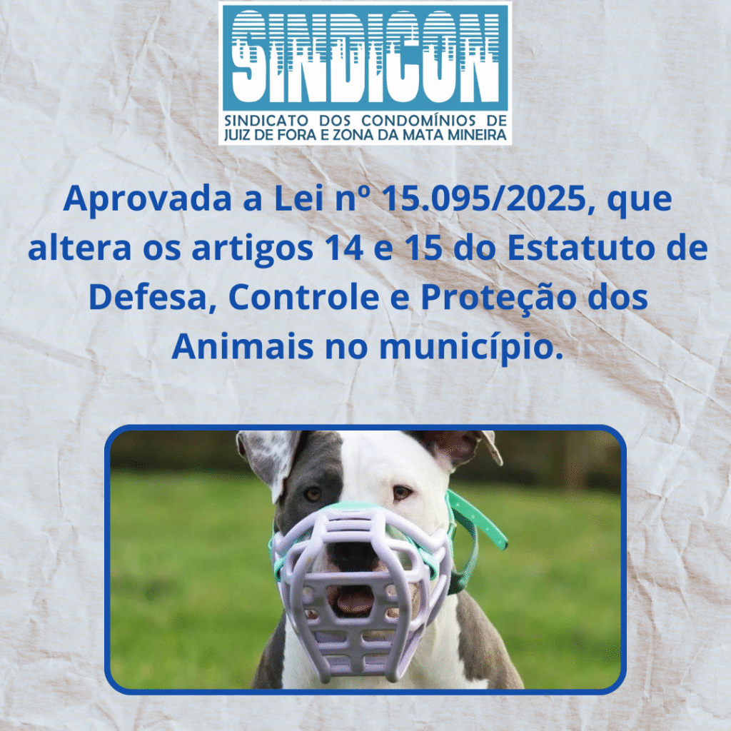Aprovada a Lei nº 15.095/2025, que altera os artigos 14 e 15 do Estatuto de Defesa, Controle e Proteção dos Animais no município.